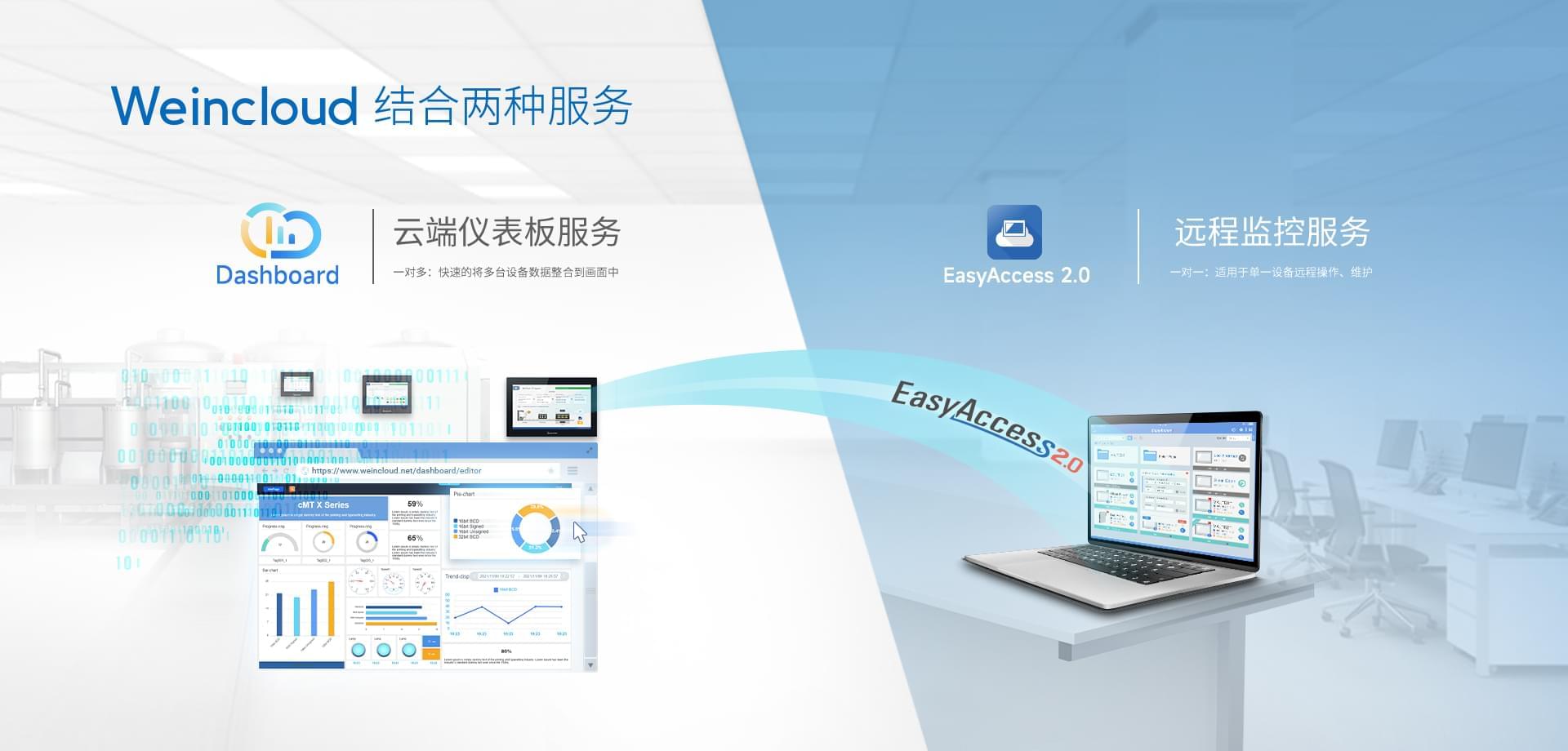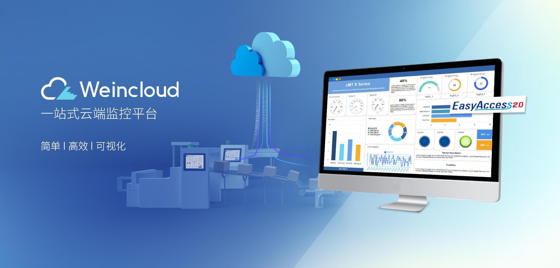 Weincloud 集結(jié)EasyAccess2.0遠(yuǎn)程監(jiān)控服務(wù)及Dashboard云端儀表服務(wù),將設(shè)備資料數(shù)據(jù)上云并以視覺(jué)化呈現(xiàn),協(xié)助管理者實(shí)時(shí)掌控現(xiàn)場(chǎng)產(chǎn)線狀態(tài)。
